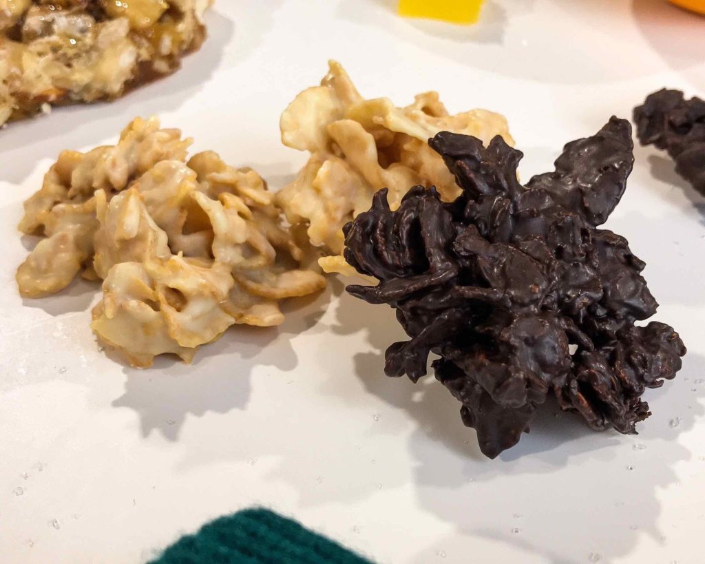 Con 2 cucchiai formate dei piccoli mucchietti su un foglio da carta da forno.
